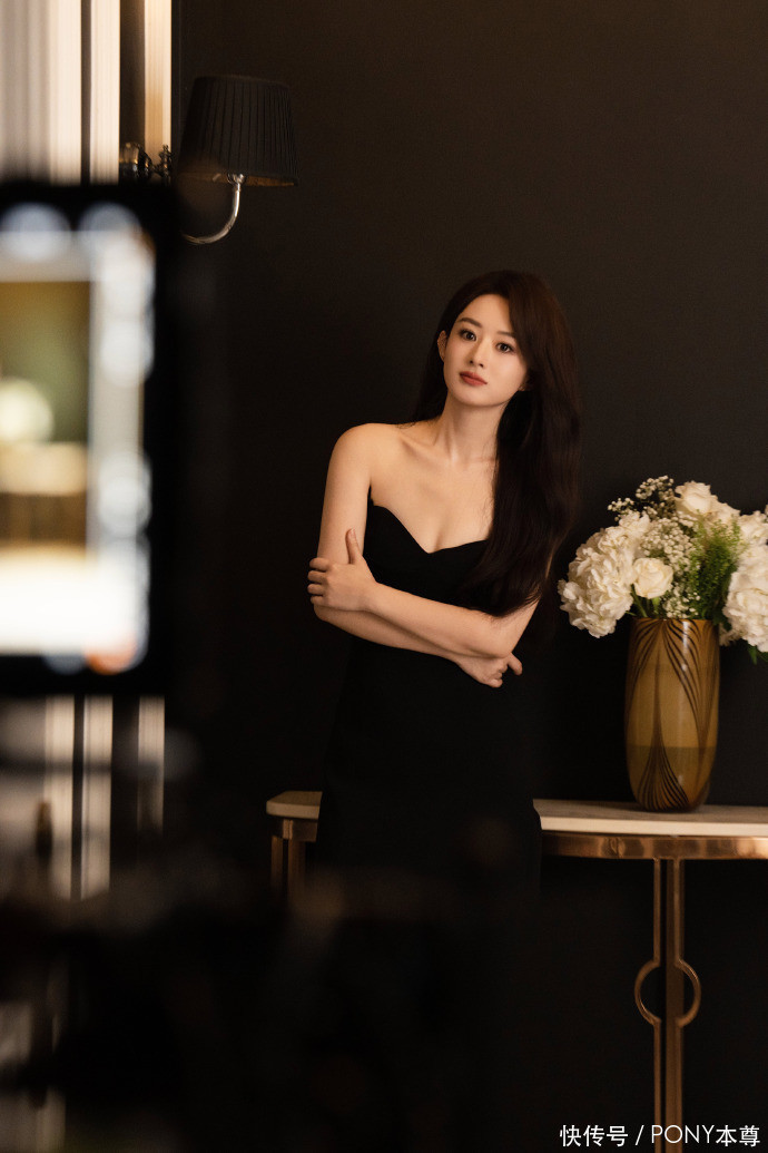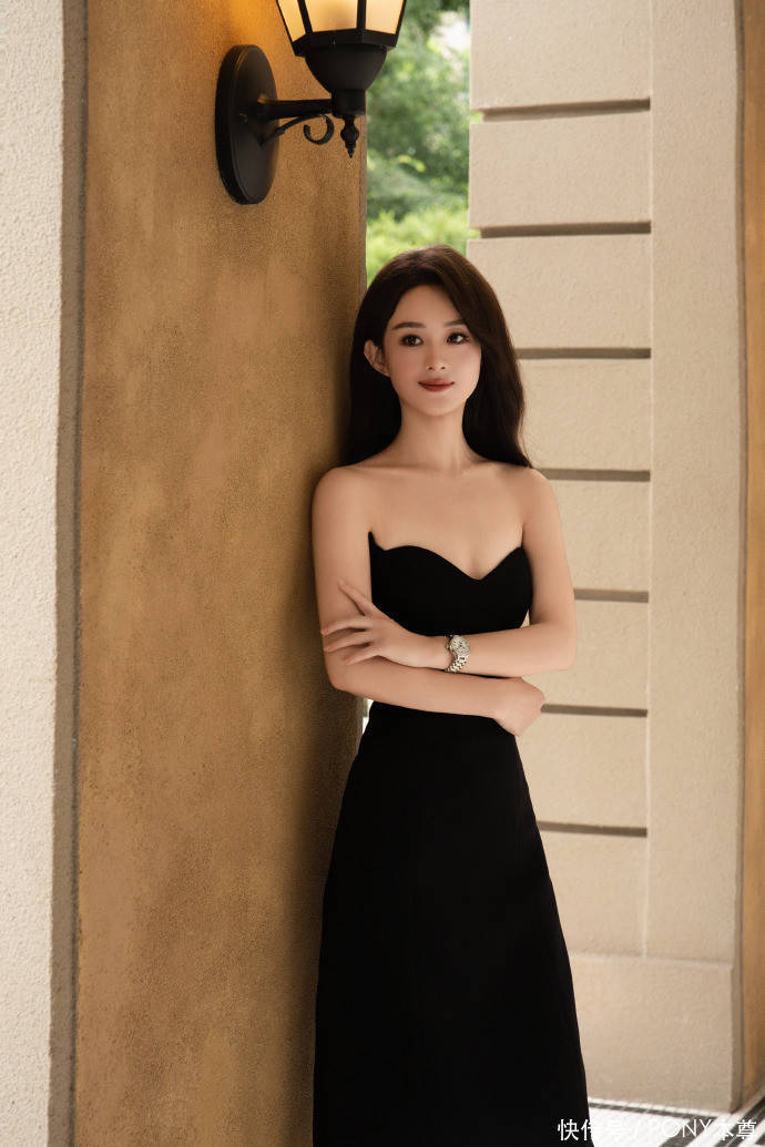 赵丽颖不做甜妹做“气质女王”,穿黑色抹胸裙搭披肩发温柔又高级
